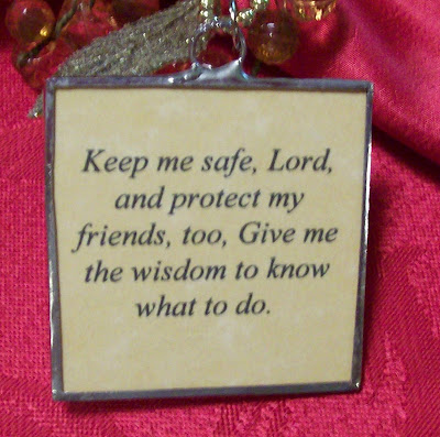 So, on the front I placed this wonderful picture of Jesus. On the back, there is a wonderful prayer for protection.